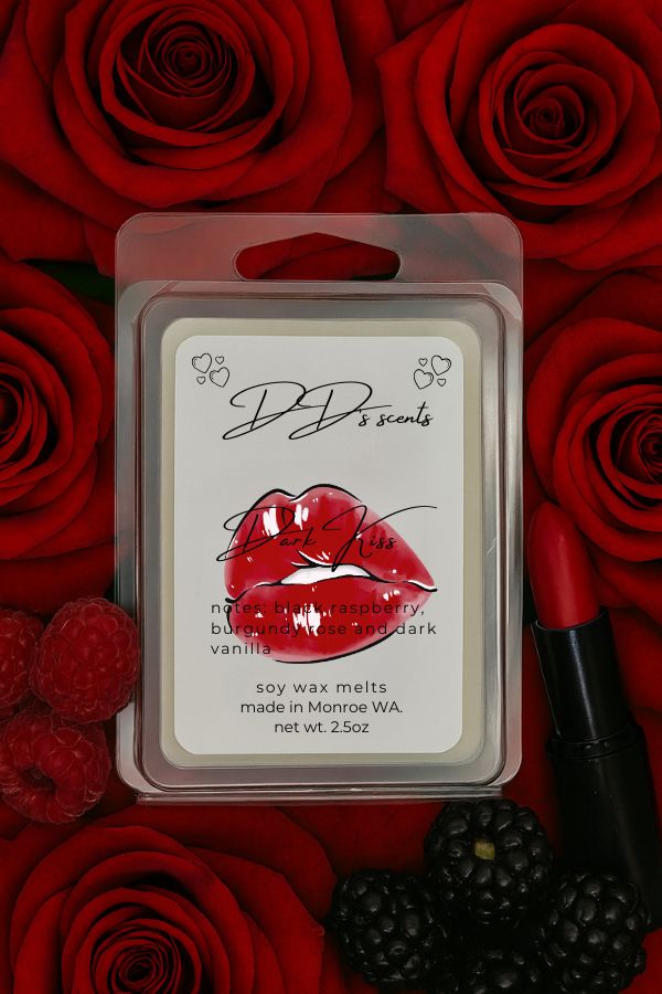 Embrace the mysterious and seductive fragrance of our Dark Kiss Soy Wax Melts. This captivating blend combines rich, warm notes of dark berries, exotic florals, and a hint of vanilla, creating a deep, alluring scent that fills your space with intensity and elegance. The bold, sweet aroma of dark berries intertwines with soft, romantic florals and a touch of warmth, making it perfect for setting a sophisticated, inviting mood. These melts provide a long-lasting fragrance that transforms any room into a sensual, comforting escape. Simply add one or two melts to your wax warmer and enjoy the enchanting, luxurious scent of Dark Kiss for hours.